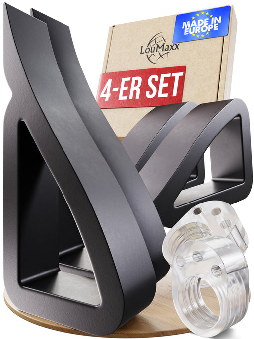 LouMaxx Fensterstopper - Fenster Stopper - Fensterkeil - Türstopper Kunststoff - der Allrounder im Bereich Tür und Fenster offen Halter - 4er Pack in Schwarz inkl. Türklinkenpuffer