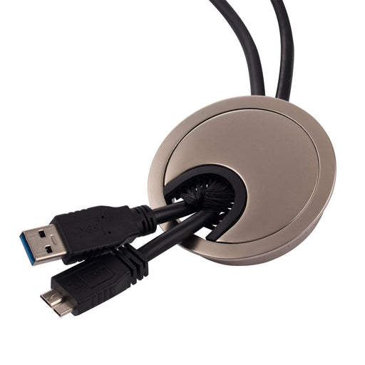 LouMaxxLouMaxx Kabeldurchführung 60 mm Ø – 2er Set Metall matt Nickel Kabeldurchführung Schreibtisch mit Bürstendichtung