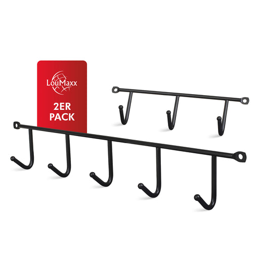 Vollständige Details anzeigenLouMaxx Hakenleiste – Kleiderhaken Wand 2er Set in Schwarz – Gaderobenhakenleiste – optimaler Helfer für Küche, Bad und Garage