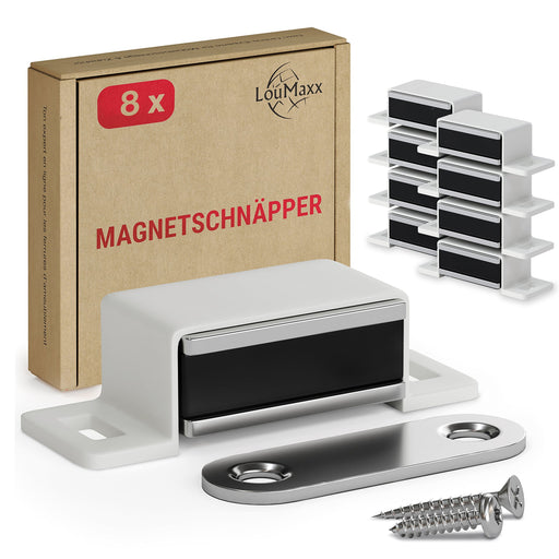 Vollständige Details anzeigenLouMaxx Magnetschnäpper stark - Haltekraft 4kg - 8er Set in weiß – Türmagnet - Magnetverschluss - Tür Magnet - Magnetverschluss Schrank - Magnet Türschließer - Magnet Schranktür