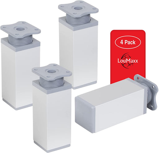 LouMaxx Möbelfüße verstellbar eckig– 4er Set 40x40x100mm in Weiß inkl. Befestigungsplatte – Füße für Möbel aus Aluminium
