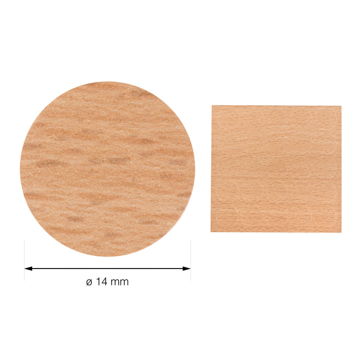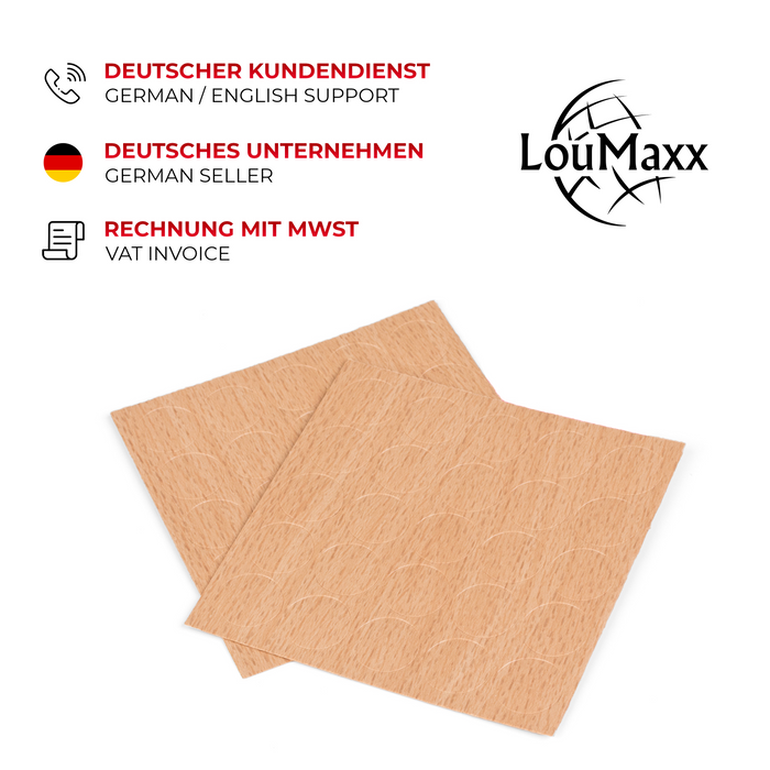 LouMaxx Abdeckkappen für Schrauben rund, Buche Ø 14 mm – 50er Set - Selbstklebende Abdeckkappen für Bohrlöcher und kleine Beschädigungen – Universelle Schraubenabdeckung– Made in EU