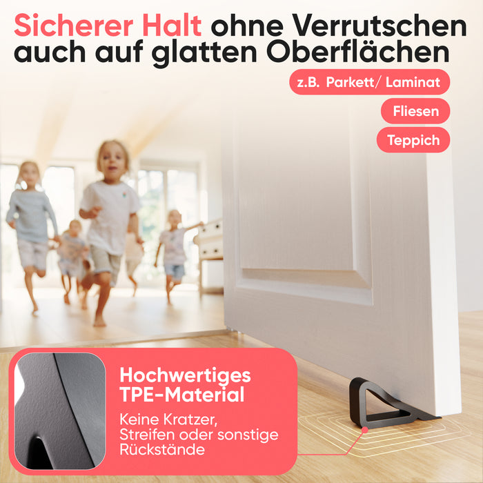 - Zuverlässiger Schutz: Der robuste Türkeil verhindert zuverlässig das Zuschlagen von Türen und Fenstern. Das schützt nicht nur Wände und Möbel vor Beschädigungen, sondern reduziert auch das Verletzungsrisiko – ideal für Haushalte mit Kindern oder Haustieren.
