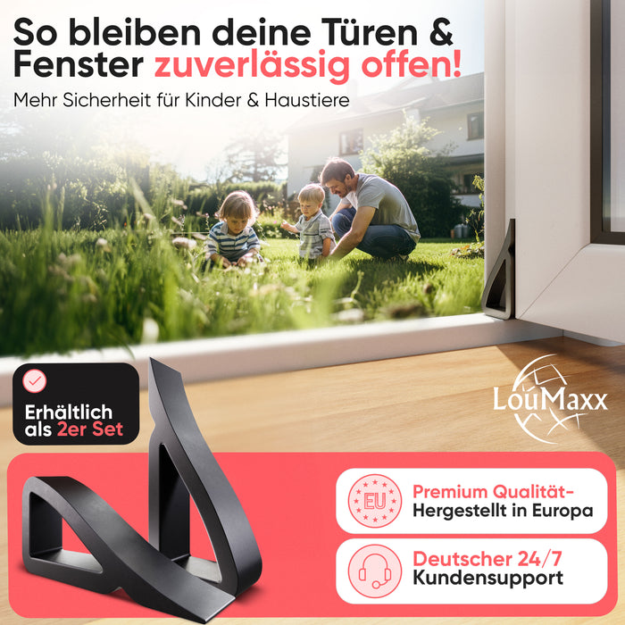 - Vielseitig einsetzbar: Die LouMaxx Fensterstopper sind die ideale Lösung, um Fenster und Türen zuverlässig offen zu halten – auch bei starkem Durchzug oder in Kippstellung. Sie eignen sich für den Einsatz an Fenstern, Balkontüren und Innentüren und funktionieren auf allen gängigen Bodenbelägen.