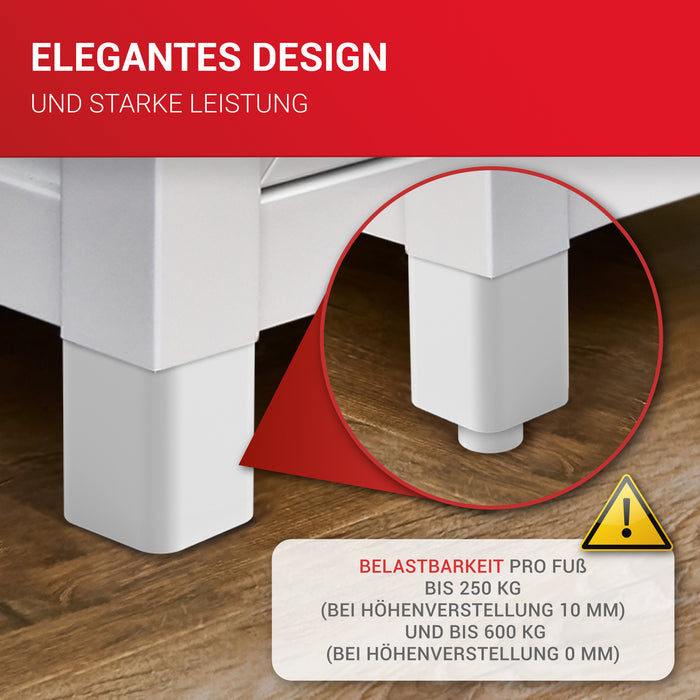 • ✔️QUALITÄT: LouMaxx Kommode Füße sind aus einem hochwertigen, 3,5-mm starken ABS-Kunststoffprofil gefertigt. Jeder Möbelfuß weiß kann mit bis zu 250 kg belastet werden. Durch die um 10mm verstellbaren Füße für Möbel weiß stehen die Schrank beine stabil und wackelfrei auf jedem Boden.