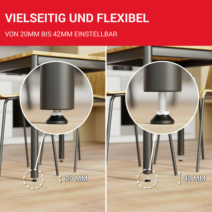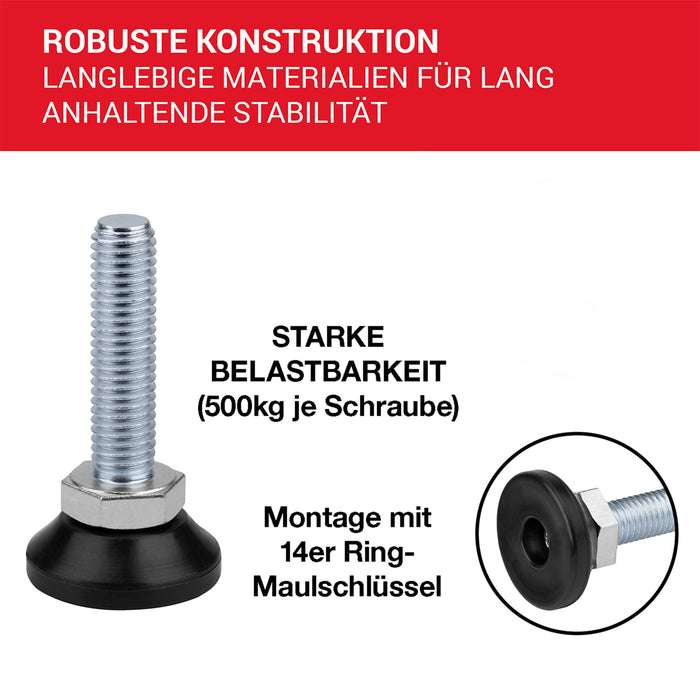 ??MAßE: Stellfüße M10 (Gewindedurchmesser), Gewindelänge 30 mm, Basisdurchmesser: Ø 30 mm aus schwarzem Kunststoff ?? ANWENDUNG: Die LouMaxx Stellschraube ist ein praktisches, hochwertiges Produkt als Tischbein Verlängerung, Maschinenfüße oder als verstellbare Möbelfüße, um z.B. Möbel, Schränke oder Regale zu justieren. ??QUALITÄT: Die vollverzinkten Schraubfüße aus Stahl bieten eine maximale Belastbarkeit von 500 kg. Der Schraubfuß eignet sich daher auch als Maschinenfuß M10 ??LIEFERUMFANG: 10 Verstellschrauben M10 x 30 mm, Fußteller: Ø 30 mm; 10 Einschlagmuttern