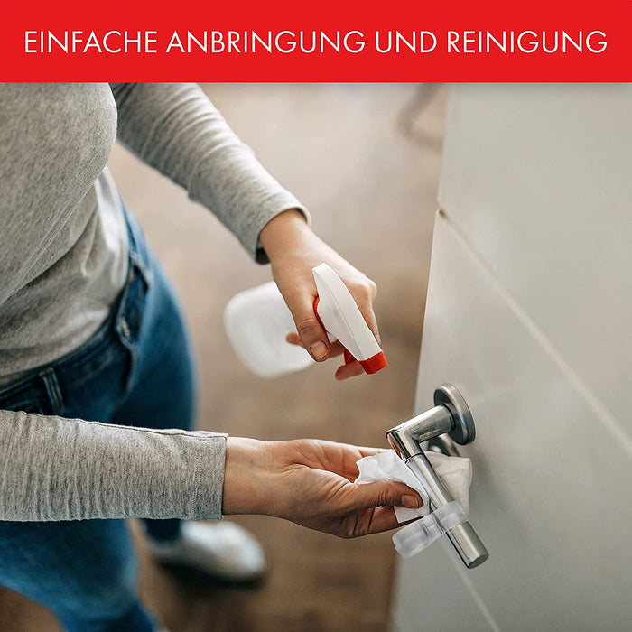 • FLEXIBLE ANWENDUNG: Die Türklinken Stopper sitzen fest und sicher und sind bei Bedarf wieder rückstandslos entfernbar.