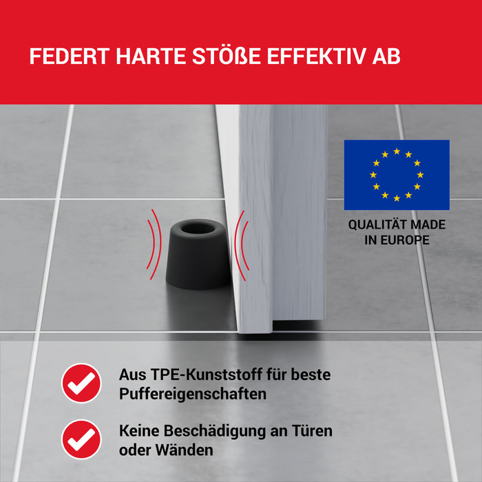 - QUALITÄT: Die Türstopper Schrauben werden aus einem hochwertigen, geruchsfreien TPE Kunststoff hergestellt. Durch seine Geschmeidigkeit und flexible Beschaffung sorgt der Stopper für optimale Pufferqualität.