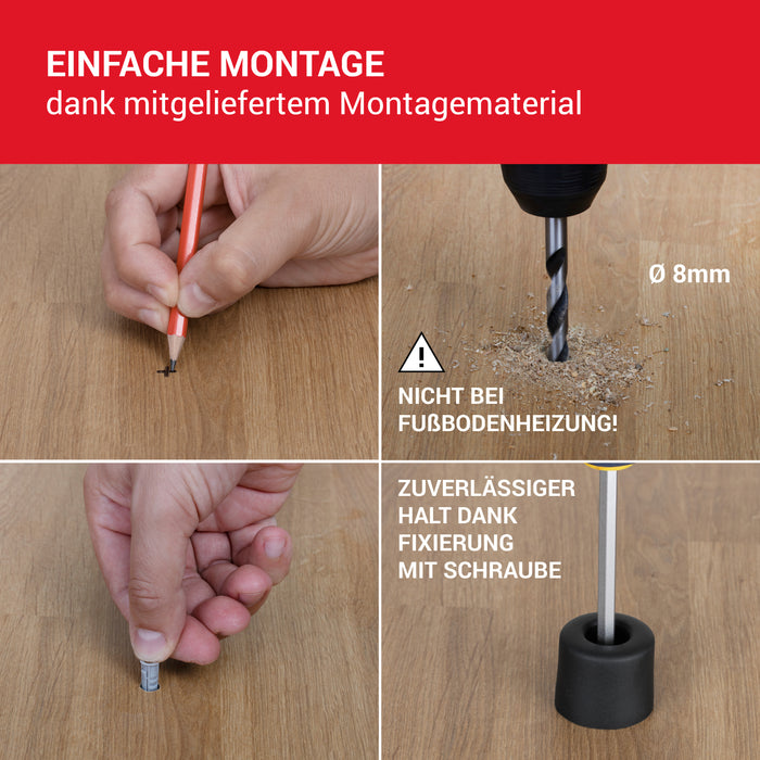 - MONTAGE: Der Tür Stopper Boden mit Schraube wird einfach an der gewünschten Position in den Boden geschraubt.